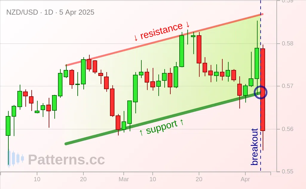 It seems like NZD/USD forms an ascending channel. An ascending channel is believed to be a bearish price indicator that signals a bearish move when price breaks out to the the downside. NZD/USD to suffer a steeper decline towards the 0.565 zone.