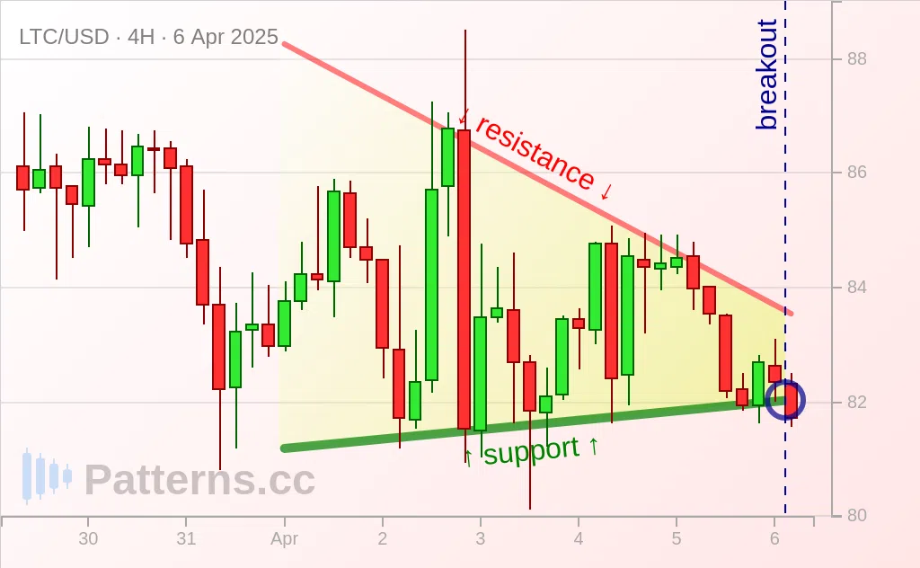 There is a pennant exposed, the price is ready to break out now. In case if price collapses through the support line, the resulting move could indicate that the price to go down. There is a chance of a rangebound towards 80 as the cryptocurrency becomes vulnerable.