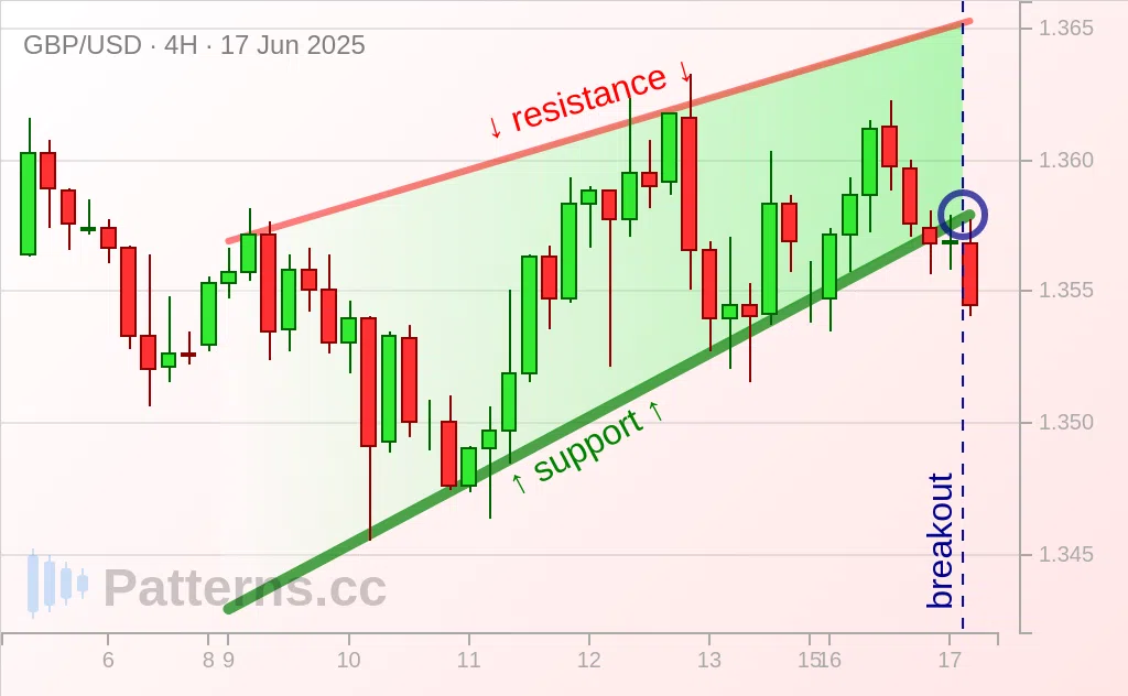 It looks like a rising wedge has been revealed, the price breaks out soon. A rising wedge suggests a bearish chart indicator that can be used to signal that the price to go down once price breaks out to the the downside. GBP/USD tests a move towards the 1.35 mark on a breach of 1.356.