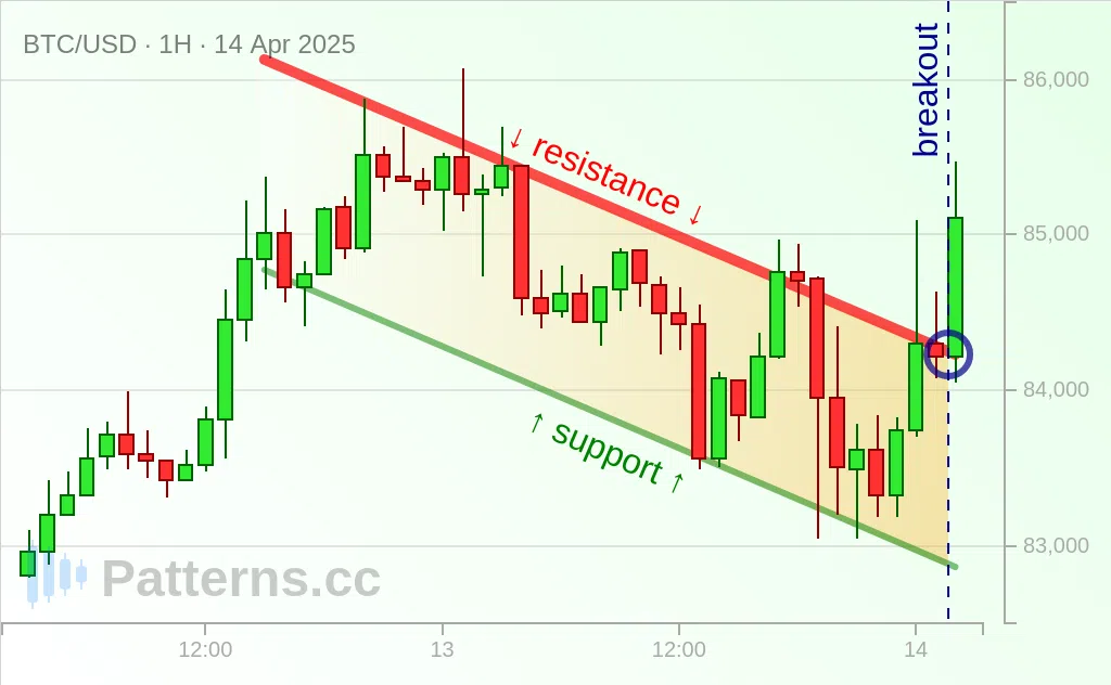 It looks like a bullish flag has been recognized, the price is going to break out now. A bullish flag results in a bullish price action if price breaks through the resistance. BTC/USD opens door for a move towards 85000 on a breakout of the bullish flag as BTC/USD nears 84400 hurdle.